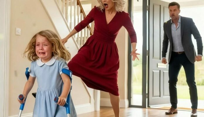 Seline stood towering over Clara, anger flashing in her eyes. âYou clumsy child!â she snapped, kicking away one of Claraâs crutches. The little girl stumbled, tears streaking her cheeks. âPlease, Iâm sorry,â she whispered.