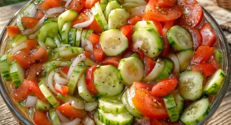 Some salads feel like something you add to a meal out of routine, while others completely redefine what a salad can be. This recipe belongs firmly in the second category. Bright, colorful, and full of fresh ingredients, it brings together flavors and textures that work in harmony rather than competing with one another. Crisp cucumbers provide a refreshing crunch, juicy cherry tomatoes add natural sweetness, and a mix of leafy greens creates a light, vibrant base. A modest amount of creamy feta cheese ties everything together, adding depth without overpowering the freshness of the vegetables.