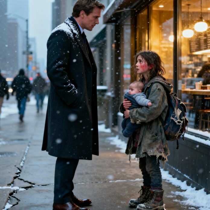 Daniel turned and saw a young girl, no older than ten, shivering on the sidewalk. Her shoes were worn, her coat too big and frayed at the sleeves. In her arms she held a tiny infant bundled in thin fabric.