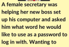 As part of the setup, she asked him to create a password. Wanting to show a bit of personality, he chose a word he thought might catch her off guard. Remaining calm and professional, she entered it exactly as instructed, without any reaction.
