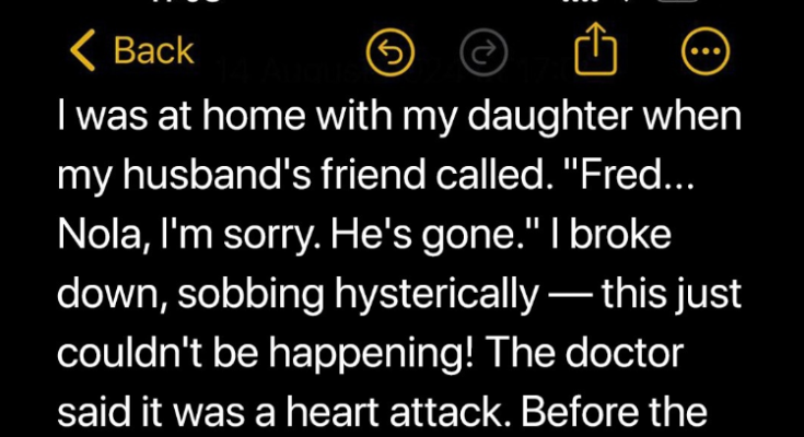 When Nola’s phone rang that quiet weekend morning, she assumed it was a routine call from her husband. Instead, the voice on the other end carried devastating news that would change everything. Fred, the man she had shared years of memories with, had collapsed during a weekend fishing trip with friends. Emergency crews had tried to revive him but declared there was nothing more they could do. In that instant, Nola’s world seemed to shatter.