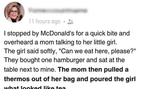 After a long, exhausting day, I pulled into a McDonald’s drive-thru hoping for a quick meal. While waiting inside, a soft conversation nearby caught my attention. A young mother stood beside her little girl—no more than five years old—who looked up with wide, hopeful eyes.
