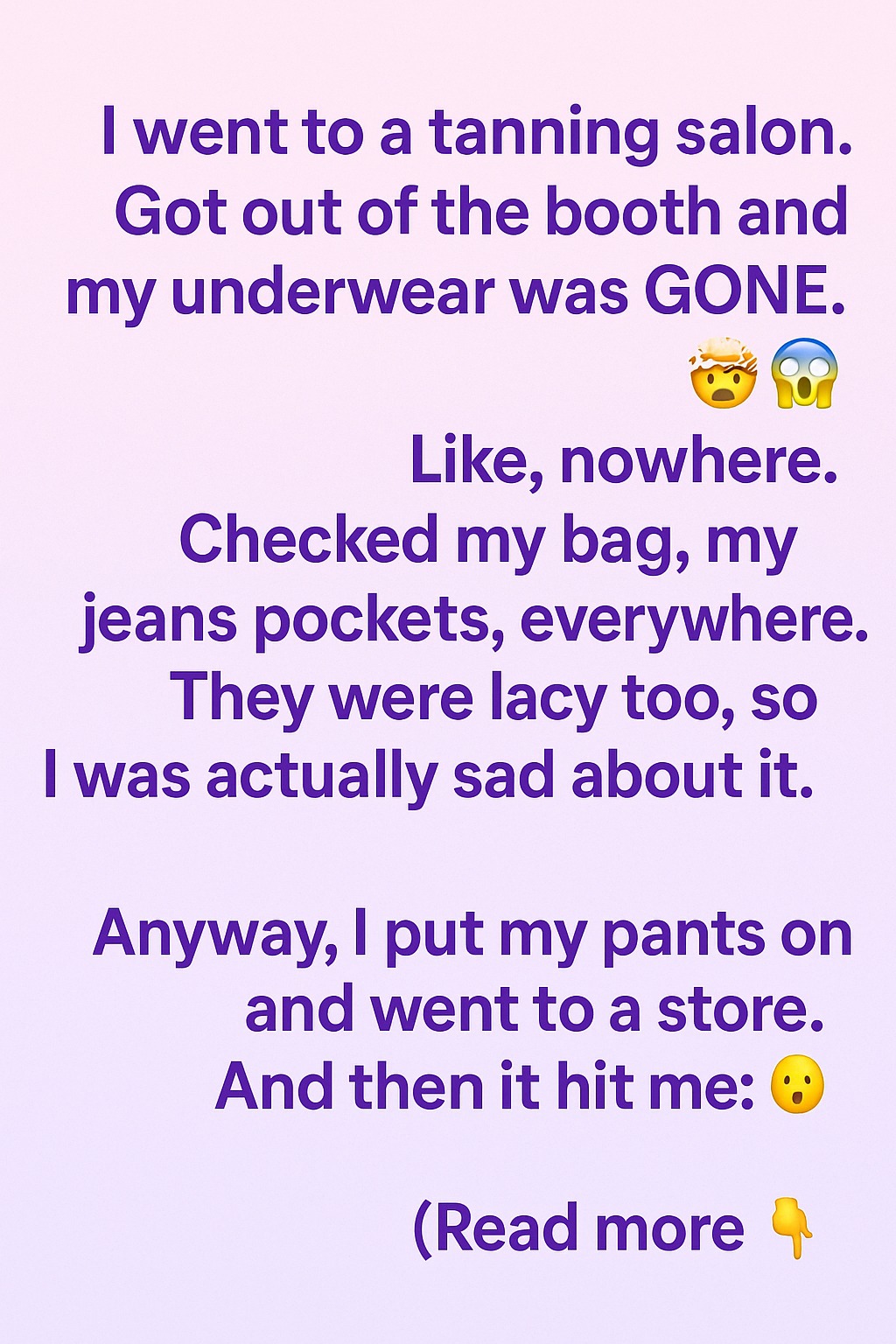 I recently stopped by a tanning salon, expecting nothing more than a quick visit. But the moment I stepped out of the booth, I noticed something strange—one of my clothing items had completely vanished. It wasn’t in my bag, my pockets, or anywhere in the room. For a moment, I stood there puzzled, wondering how something could disappear in such a small, enclosed space. With no answers in sight, I simply slipped back into my jeans and went on with my day.