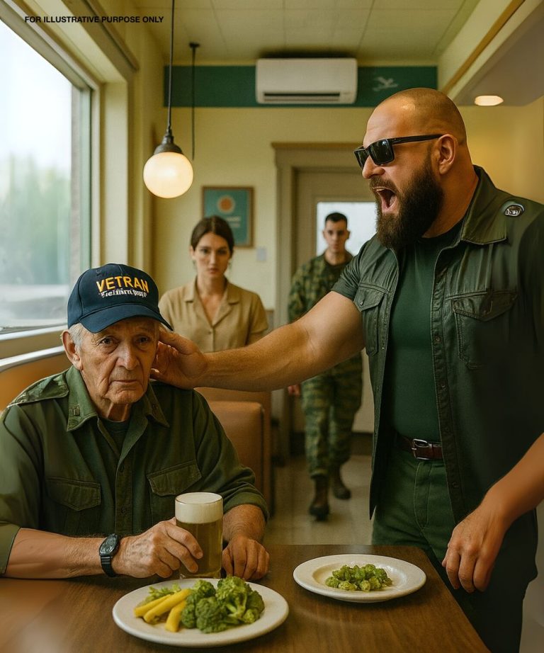 But the veteran didn’t shout or push back. He simply picked up his cap, wiped his sleeve, and asked quietly for the phone at the counter. He dialed a number, spoke only a few words, then returned to his chair, eyes steady on the window as if nothing had happened.