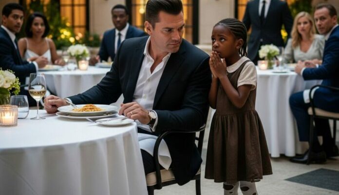 Richard Hale, billionaire CEO of Hale Industries, froze mid-bite. He looked down to see a little girl no older than seven, wearing a faded dress and worn shoes. Her eyes were wide, filled with hunger—and something else he couldn’t quite name.
