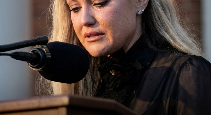 Large stadiums are usually designed for high energy—cheering crowds, loud music, and moments meant to capture attention instantly. When Erika Kirk stepped onto the stage in Arizona, many expected a powerful, high-volume speech filled with strong reactions. Instead, the atmosphere shifted in an unexpected way.