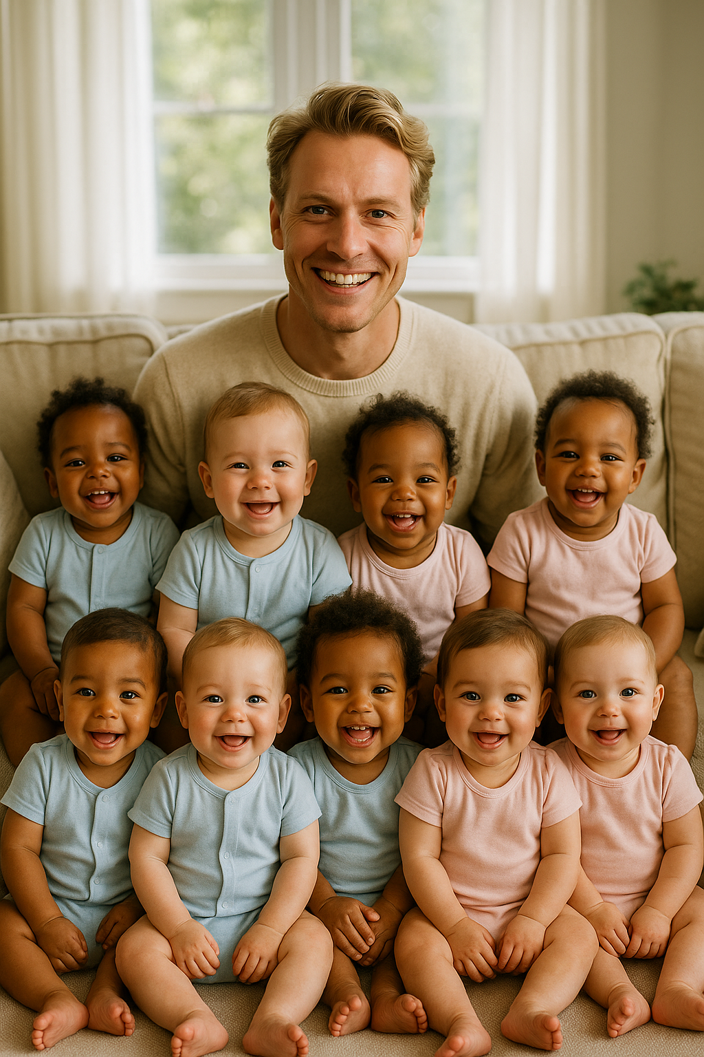 The early years weren’t easy. There were sleepless nights, endless bottles, and nine voices crying at once. But Richard built nine cribs by hand, painted each one himself, and created a bedtime routine that ended with a lullaby and a kiss on the forehead.