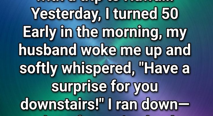Before the sun had fully risen on my birthday morning, I felt a gentle nudge and heard my husband’s familiar voice urging me to wake up. He smiled in a way that immediately suggested something was different. “There’s something waiting for you downstairs,” he said, trying—and failing—to hide his excitement. Still half asleep, I followed him, expecting nothing more than candles and breakfast.