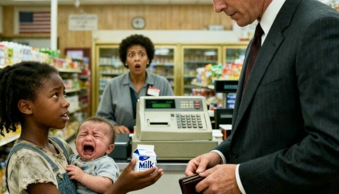 “Sir,” she whispered, clutching her brother closer. “My baby brother is hungry. Could you please give me a carton of milk? I’ll pay you back when I grow up.”