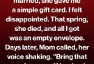 Her message continues to remind me that kindness, sincerity, and thoughtful actions are far more valuable than the size or price of any gift.