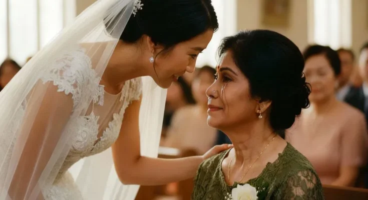 She looked radiant in her wedding gown, but her eyes were soft and warm. She gently held my hand, the hand that had carried baskets, cooked meals, and worked countless early mornings.