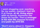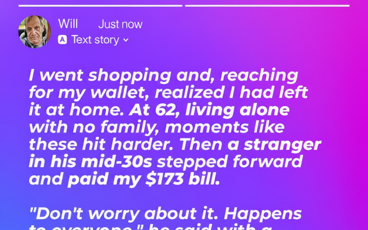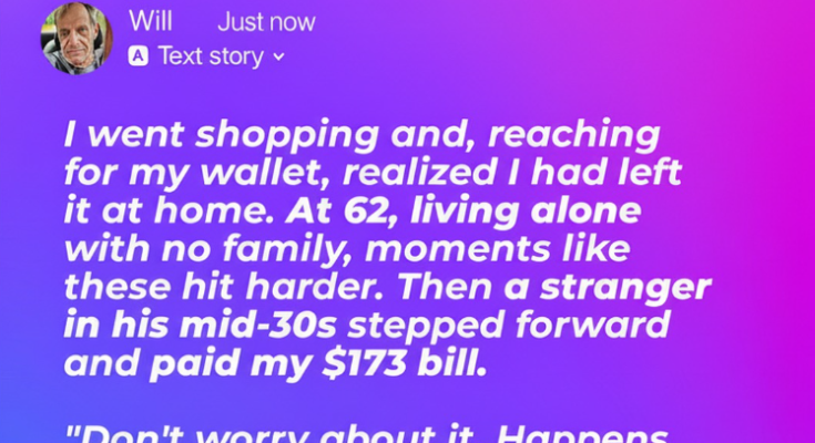 It was one of those ordinary moments that can happen to anyone — standing at the grocery store checkout, realizing your wallet isn’t where you thought it was. For 62-year-old Will, the realization hit especially hard. Living alone for years, he had grown used to managing everything by himself. As he began to stammer an apology to the cashier, a man beside him quietly stepped forward and paid the $173 bill without a second thought.
