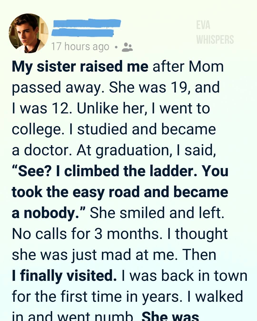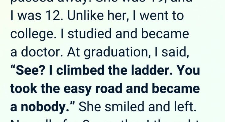 As the years passed, I focused on school. I studied relentlessly, driven by the idea that success would justify everything she had sacrificed. One achievement led to another—college, medical school, residency. Every milestone felt like proof that her efforts had paid off.