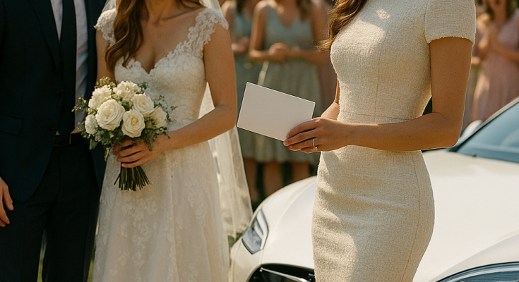 Out stepped a woman in a cream Chanel dress, designer heels gleaming, and a scent of French perfume that caught everyone’s attention.