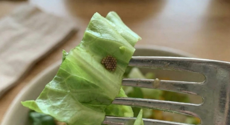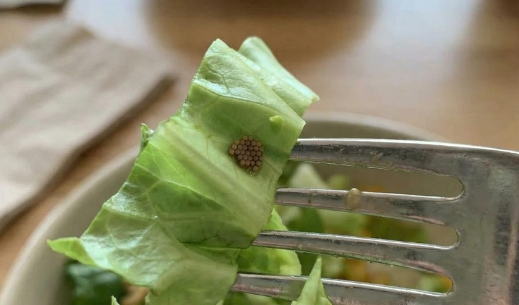 Upon closer inspection, she realized the topping was not quinoa at all. Instead, it appeared to be clusters of tiny insect eggs attached to a single lettuce leaf—something that had gone unnoticed during preparation.