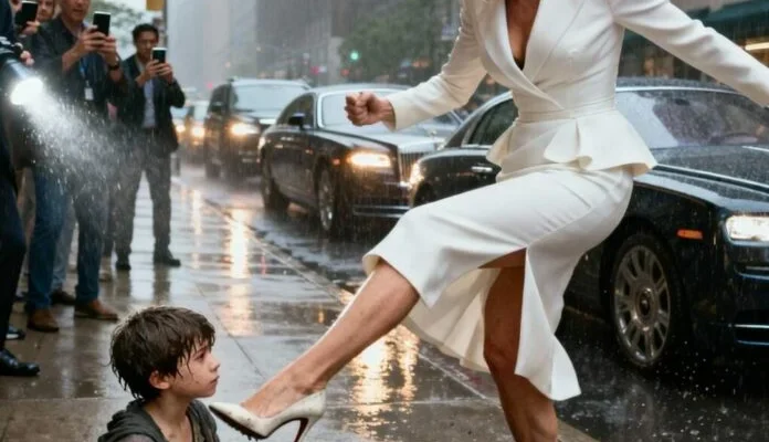 One gray afternoon in Manhattan, Isabella arrived at an upscale restaurant for a business meeting. Dressed impeccably in white, she walked briskly through the drizzle toward the glass doors when a small figure darted into her path—a boy, no older than nine, clutching a paper bag of food.