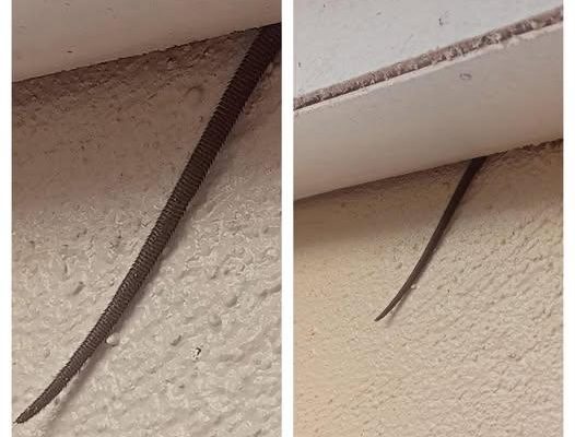 The mystery was eventually solved in a follow-up post. The object turned out to be a rat’s tail extending through the ceiling gap. After identifying the issue, the homeowner contacted a licensed pest control professional to inspect the area and address the situation safely.