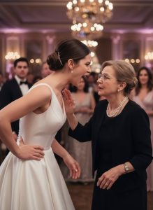 Standing in front of me was Juliet — my new daughter-in-law — her flawless white gown shimmering under the golden lights, her face twisted with anger.
