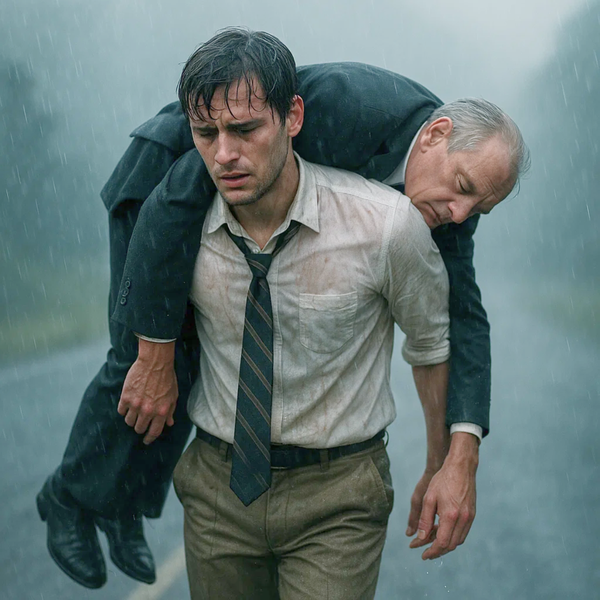 The stranger was unconscious and barely breathing. Oliver knelt beside him, checking for a pulse — faint but there. He called emergency services and began performing first aid, his hands shaking under the cold rain.